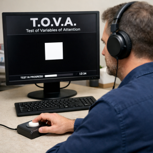 The Test of Variables of Attention (T.O.V.A.) is a computerized, continuous performance test used to objectively assess attention and impulse control, most often in the evaluation of ADHD and other attention-related conditions.